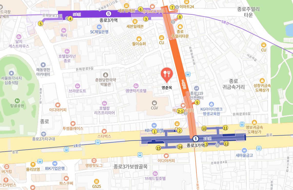 - ✅ 대중교통 이용 추천 - 종로3가역에서 도보 5분 거리