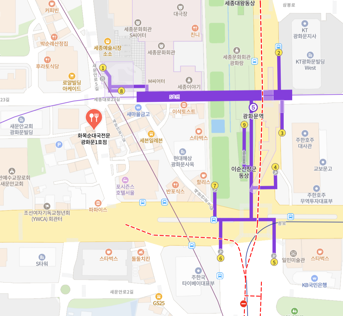 광화문역 8번출구에서 도보 1분 거리니까 그냥 지하철 추천드림다~