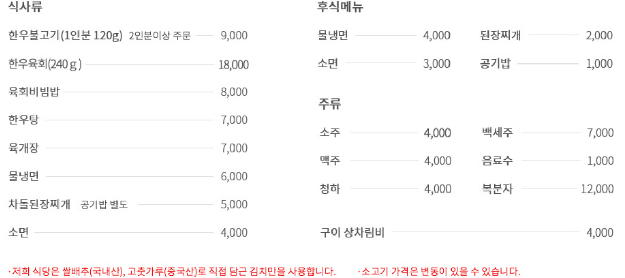 서울이나 수도권의 유명 한우 맛집은 1인분에 3~4만원을 우습게 넘기죠. 하지만 홍천한우사랑말식당은 가격 대비 품질 면에서 진심으로 만족스러운 곳입니다. 한우불고기, 육회비빔밥, 소머리국밥 등 모든 메뉴가 1만원~2만원 초반대로 구성되어 있어 가족 외식이나 단체 식사에도 부담이 없습니다. 지역에서 직접 공급받는 한우만을 사용하여 신선도도 우수하고, 현지 주민들의 사랑을 받는 ‘진짜 맛집’의 기준을 모두 갖췄다고 볼 수 있어요.