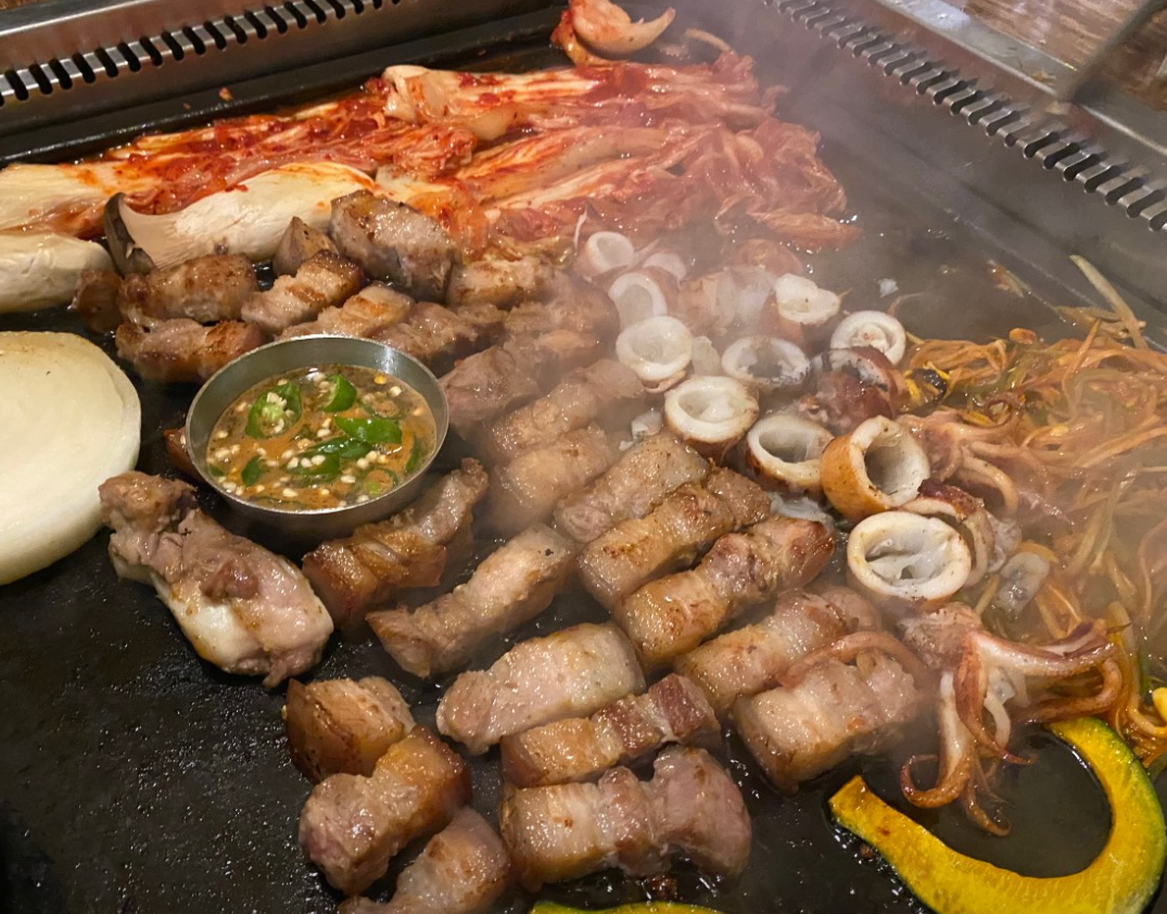A: 고기가 메인이지만, 한치, 해산물 라면, 김치찌개 등 다양한 메뉴가 준비되어 있어 고기를 즐기지 않는 분들도 맛있게 식사하실 수 있어요.