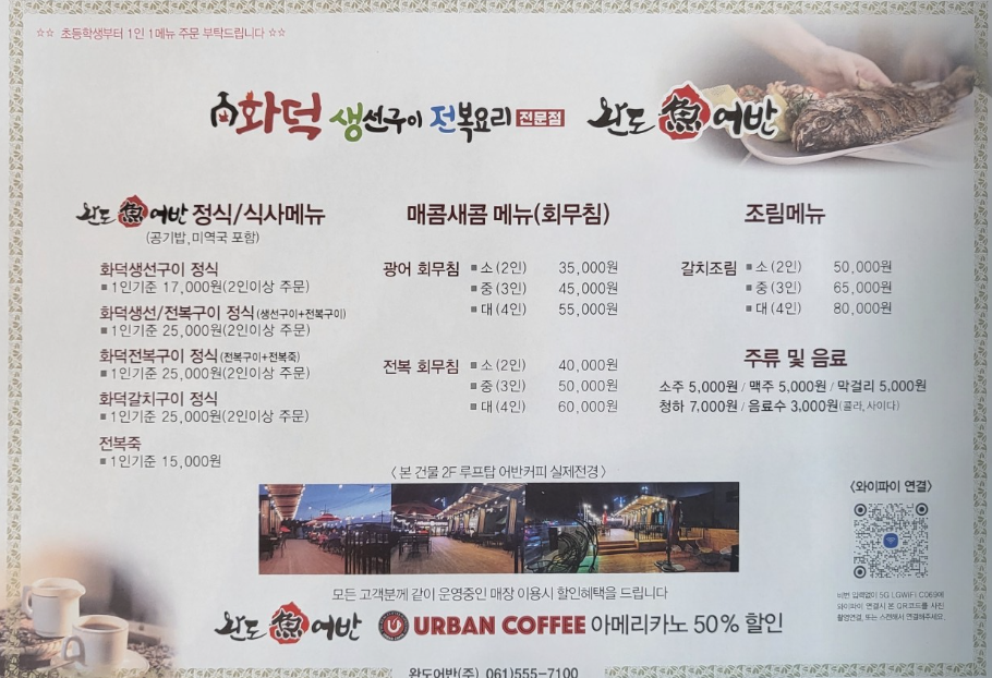 여러분도 완도 여행 중 특별한 식사를 원하신다면, 꼭 완도어반을 방문해보세요. 후회 없는 한 끼가 여러분을 기다리고 있을 거예요!