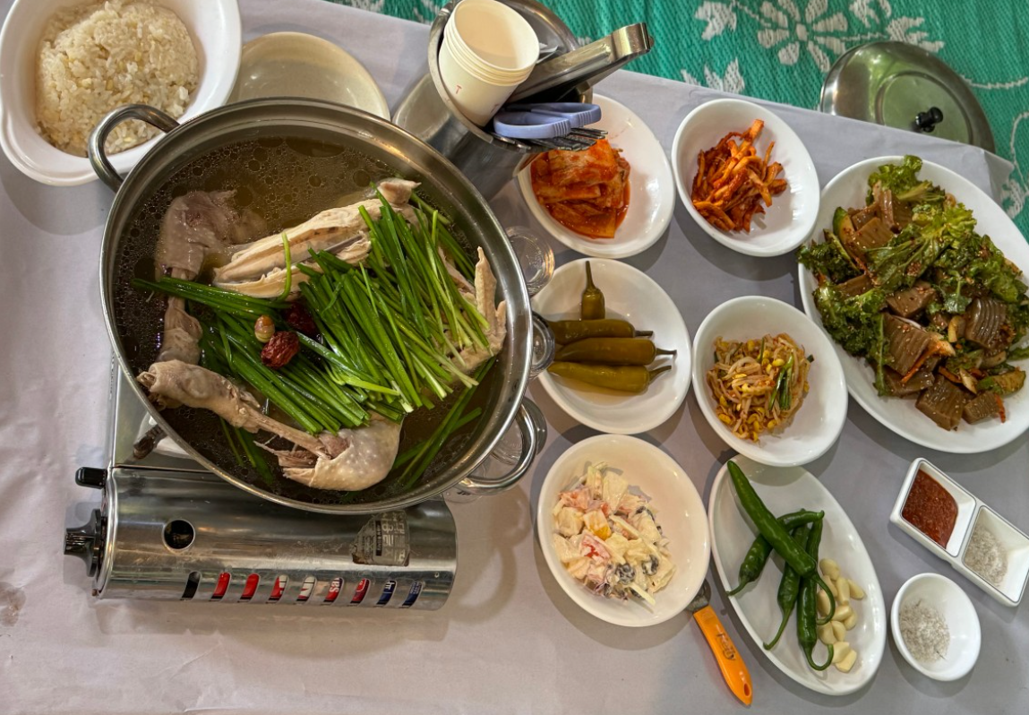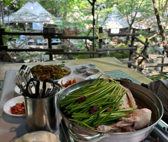 물놀이를 하다가 배고파질 때쯤, 바로 앞 식탁에 앉아 따끈한 닭백숙을 먹는 기분은 그야말로 꿀맛이에요.